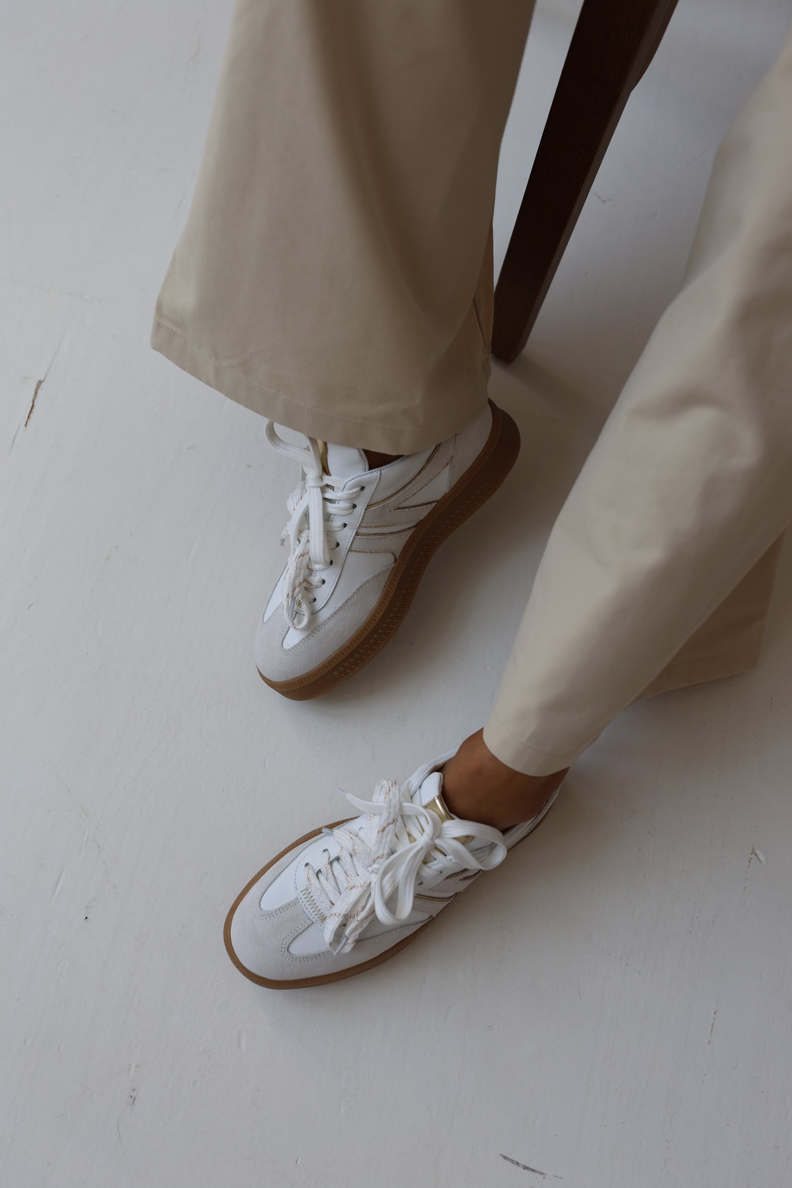 - Details: Sneaker met vetersluiting en subtiele gouden accenten