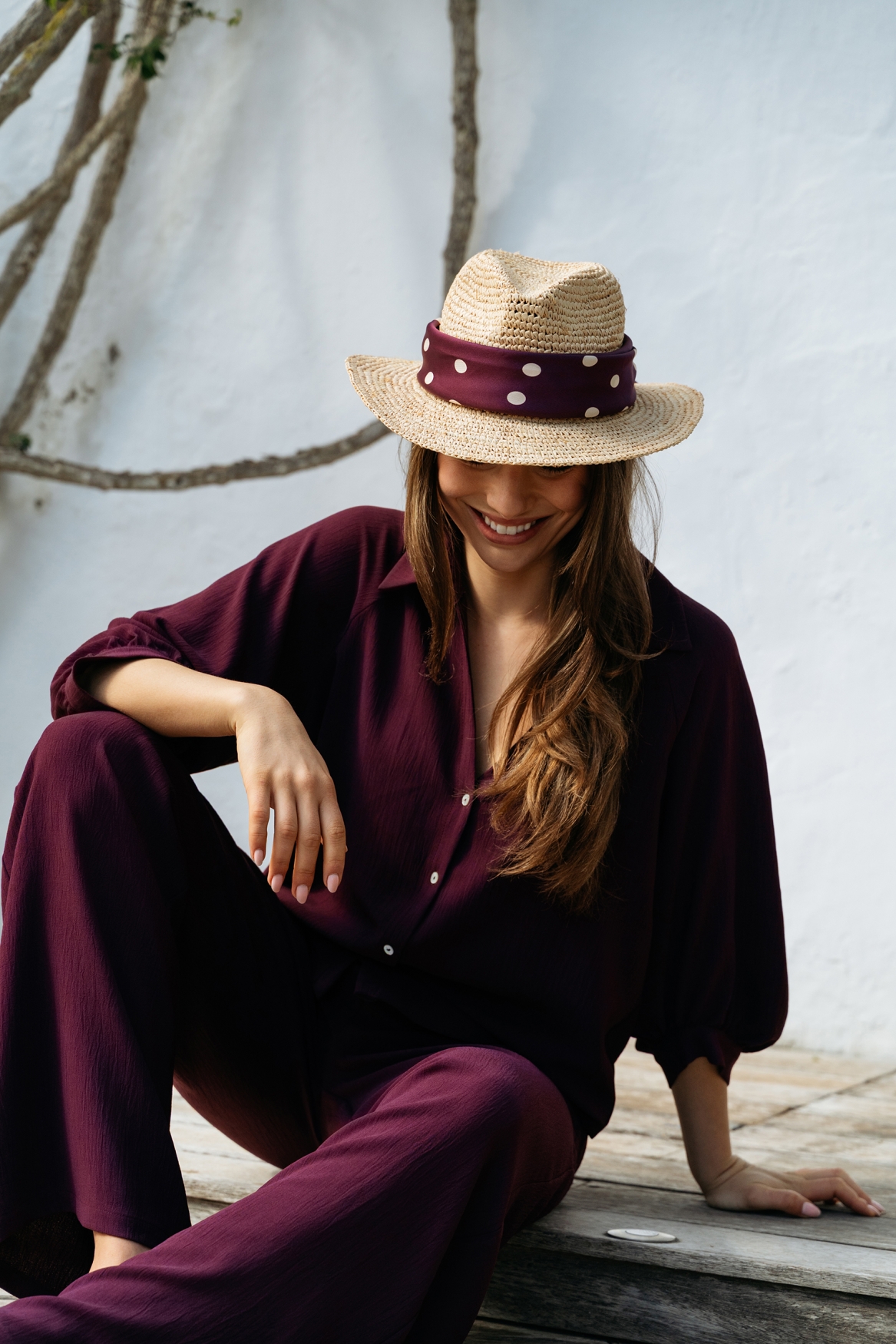 De &Co Woman Dot Scarf in de kleur Plum is een elegante accessoire die elke outfit direct een stijlvolle upgrade geeft. De subtiele stippenprint gecombineerd met de diepe, warme kleur zorgt voor een speelse maar chique uitstraling. Ideaal om te dragen bij zowel een casual als een meer geklede look.