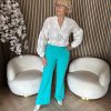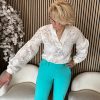 Ontdek de verfijnde Silver Blouse in White, gemaakt van delicaat kant. Deze blouse heeft een V-hals en lange, licht gepofte mouwen, en is voorzien van een intricaat kantpatroon. De witte kleur zorgt voor een elegante en tijdloze uitstraling. De Silver Blouse is perfect om op zichzelf te dragen voor een chique look, of onder het Isa Gilet in combinatie met de Sera Pants voor een complete en modieuze outfit.