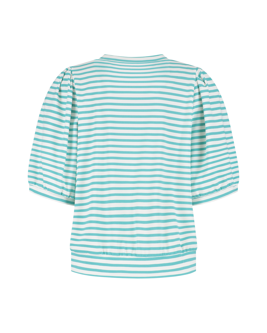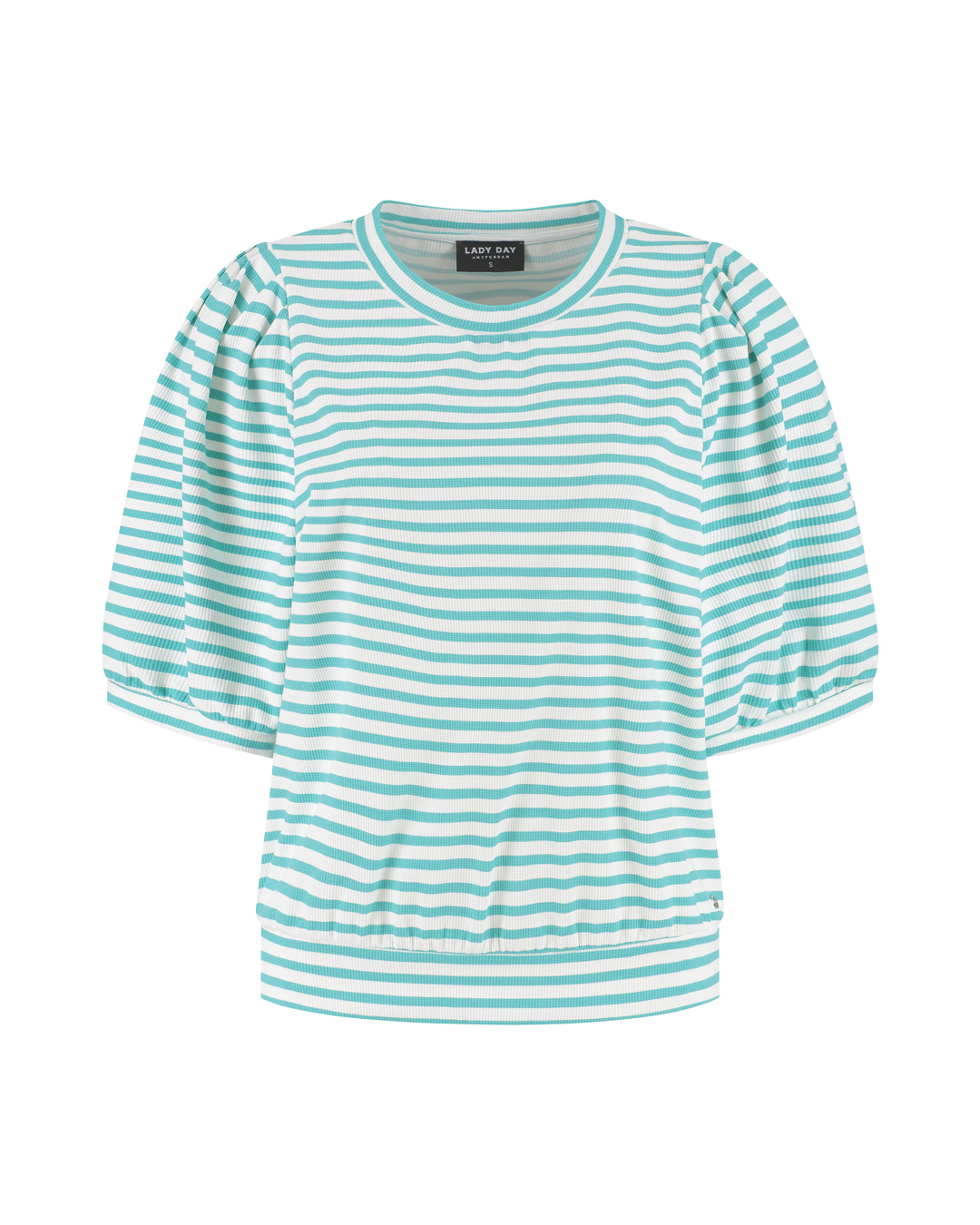 Sportieve en stijlvolle top met een frisse wit-blauwe streep gemaakt van comfortabele travelstof en valt perfect op maat.