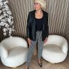 De blazer Christina is single breasted en heeft klepzakken voorop. De prachtige blazer heeft twee zakjes aan de voorzijde en sluit met een knoop.