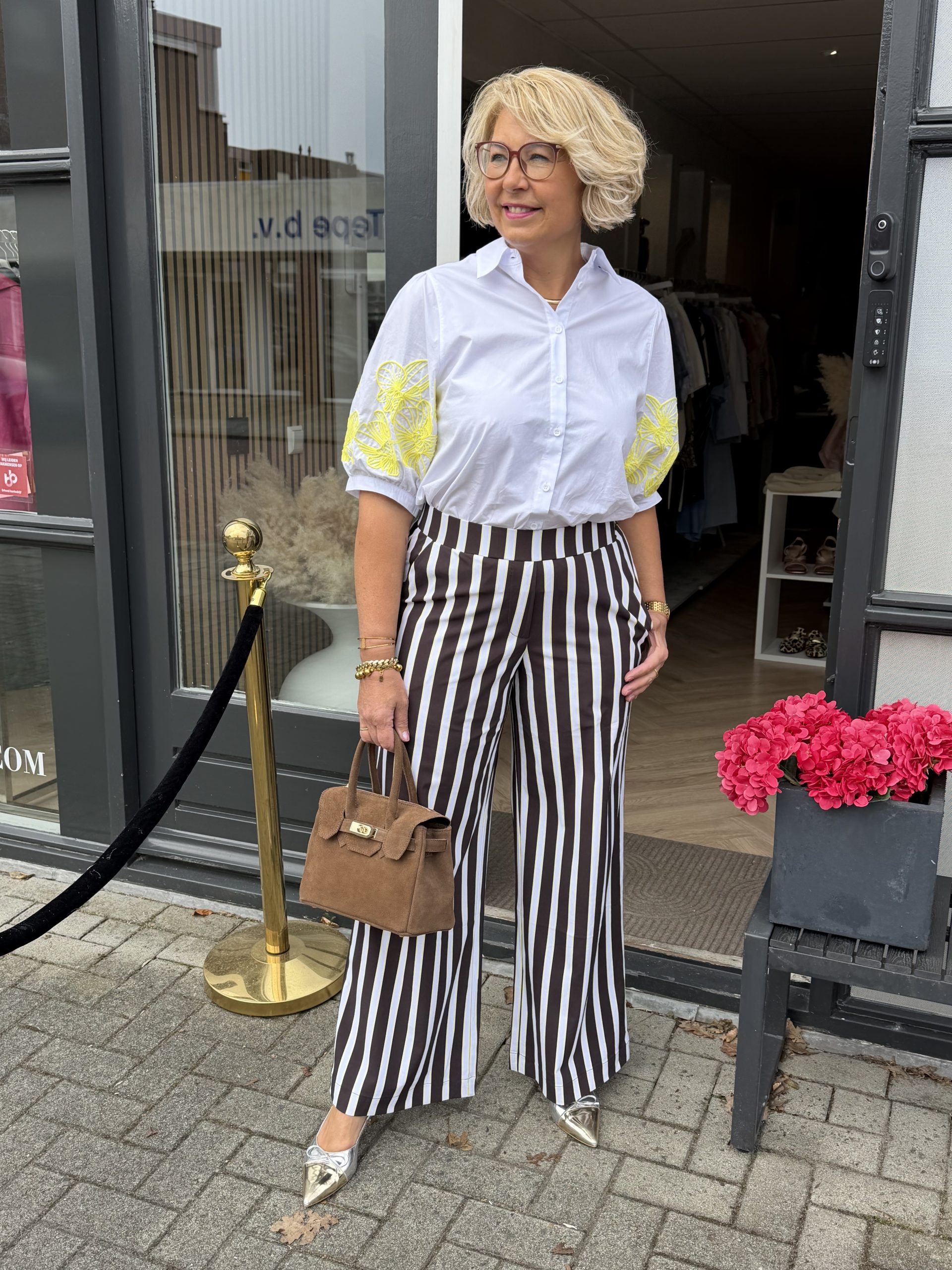 De blouse is gemaakt van 100% katoen, wat zorgt voor een licht en ademend draagcomfort. De stof voelt zacht aan op de huid en is ideaal voor dagelijks gebruik. Dankzij de pasvorm die mooi op maat valt, sluit de blouse elegant aan en creëert het een vrouwelijke en verzorgde uitstraling.