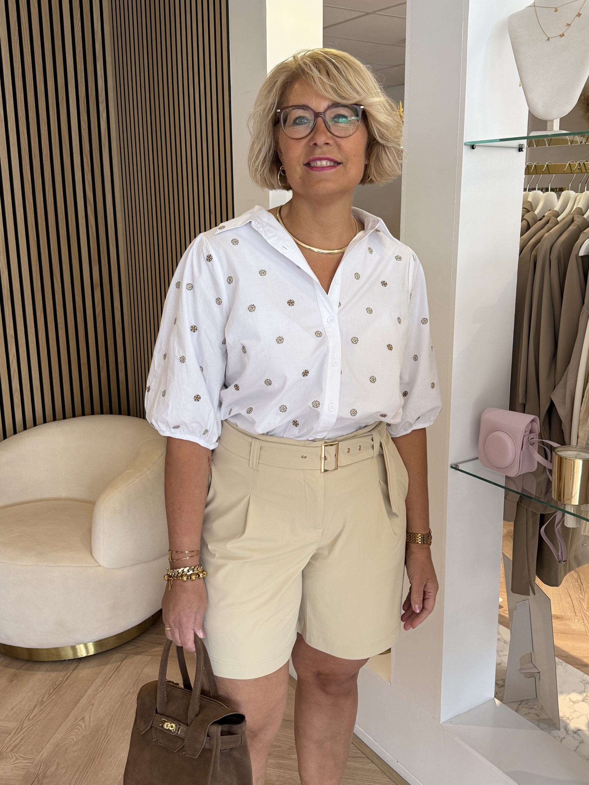 De blouse is gemaakt van 100% katoen, wat zorgt voor een ademend en comfortabel draaggevoel. De stof voelt licht en zacht aan op de huid, waardoor de blouse ideaal is voor dagelijks gebruik. Dankzij de pasvorm die mooi op maat valt, sluit de blouse elegant aan en creëert het een verzorgde en vrouwelijke uitstraling.