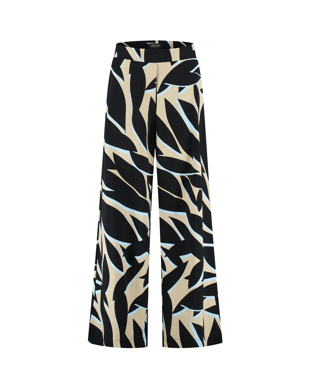 Stijlvolle broek met een wijde, elegante pasvorm en opvallende Leya print gemaakt van comfortabele travelstof en valt perfect op maat.