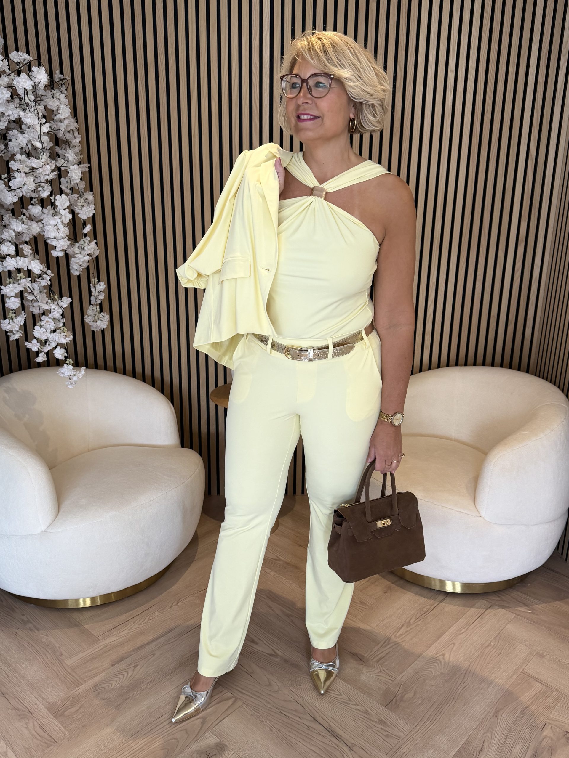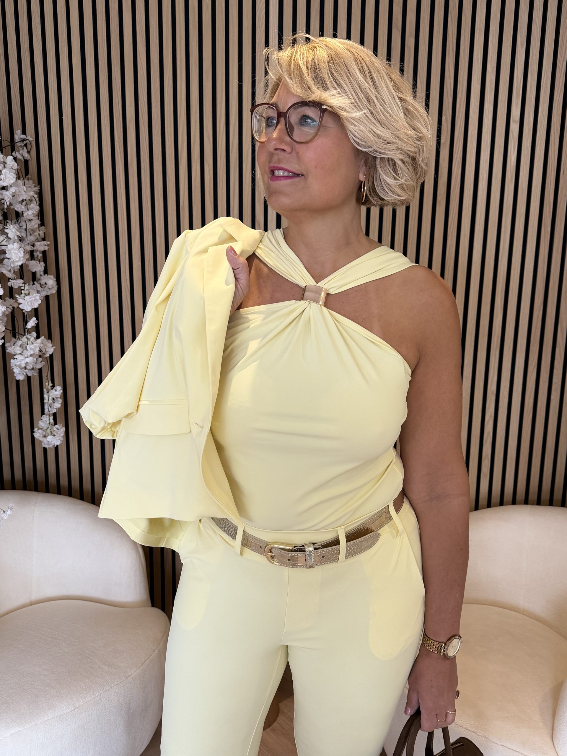 Combineer de Natalie Top moeiteloos met een pantalon, rok of blazer voor een stijlvolle en veelzijdige outfit. Ideaal voor zowel een casual dag als een meer geklede look.
