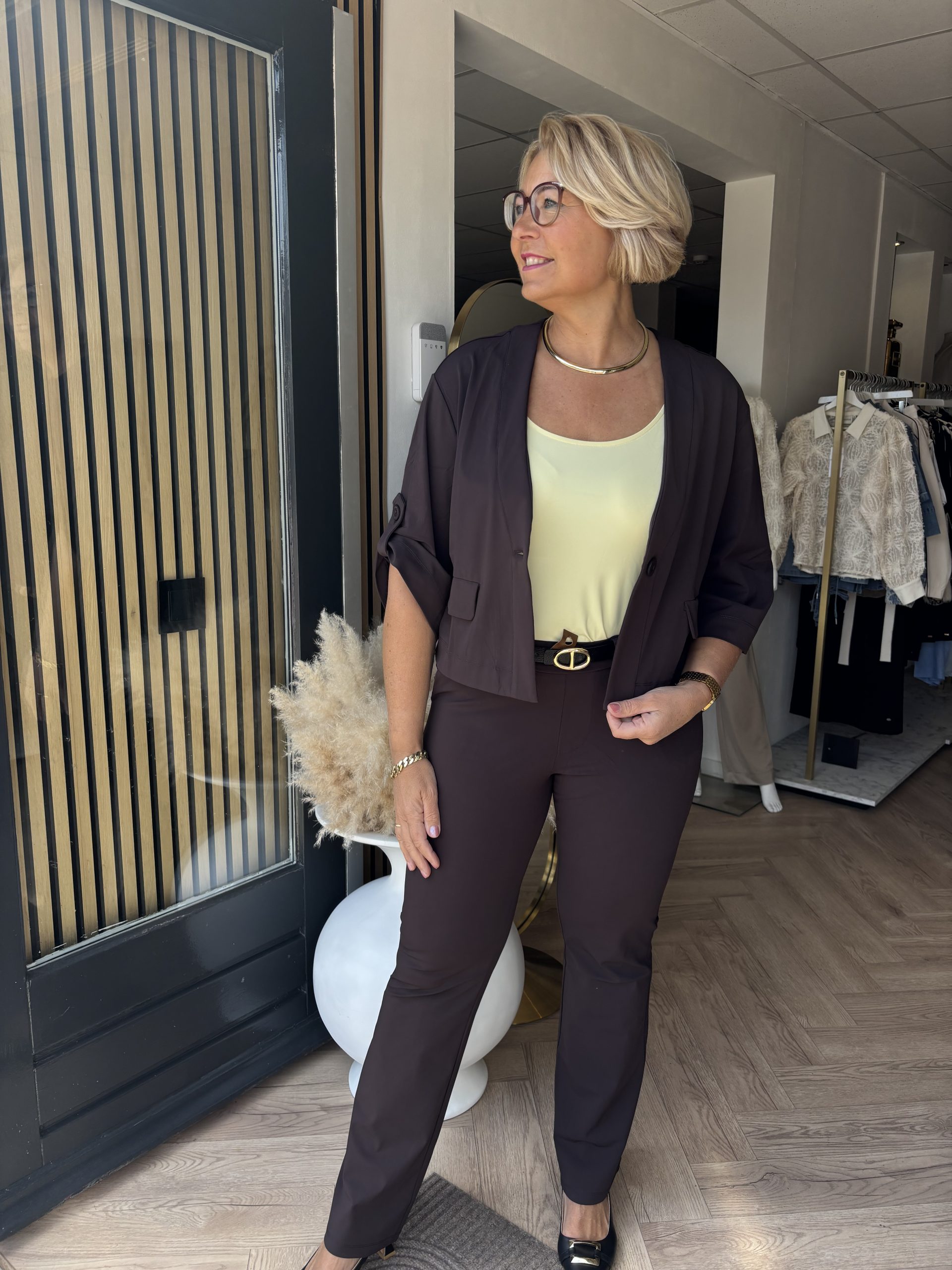 Geef je outfit een krachtige en elegante uitstraling met de Lady Day Poppy Flared Travel in Dark Brown. Deze stijlvolle broek uit de Lady Day basics collectie is een echte must-have voor iedere garderobe en combineert moeiteloos comfort met een vrouwelijke, flatterende look. De diepe bruine kleur zorgt voor een warme en luxe uitstraling.