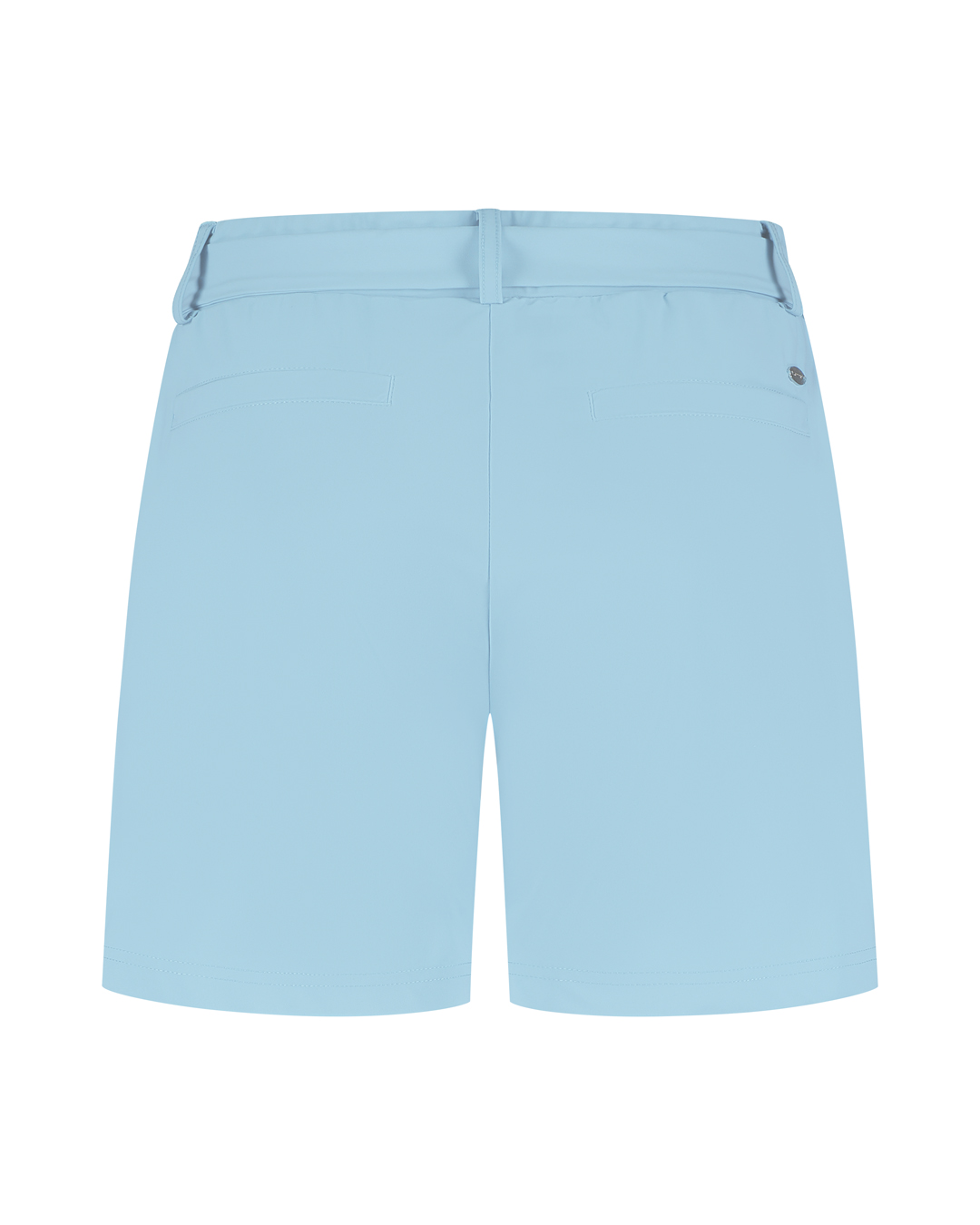 De short is gemaakt van comfortabele travelstof die bekend staat om zijn stretch, ademend vermogen en kreukvrije eigenschappen. Hierdoor blijft de short de hele dag mooi in model en geniet je van optimaal draagcomfort. De pasvorm sluit mooi aan en zorgt voor een flatterend silhouet.