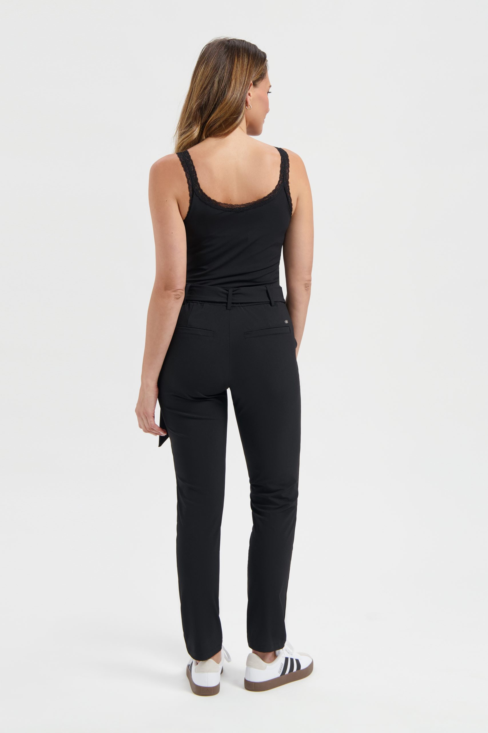 Stijlvol topje van travelstof. Dit item valt op maat.