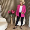 De blazer is voorzien van lichte schoudervulling, wat zorgt voor een subtiel elegante uitstraling. De sluiting met twee knopen voegt een verfijnd detail toe.