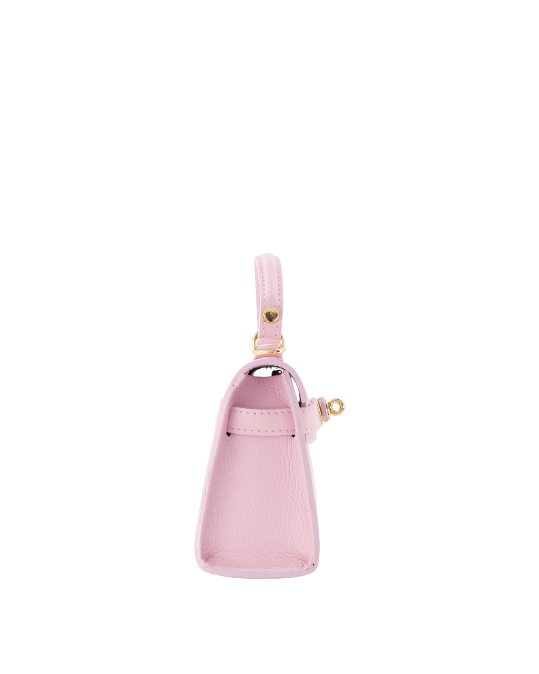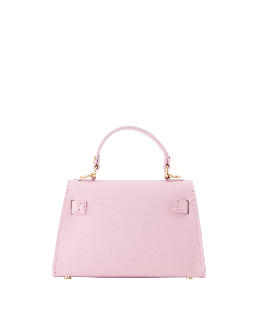 - De tas heeft op de voorkant een draaisluiting en is afgewerkt met goudkleurige hardware.