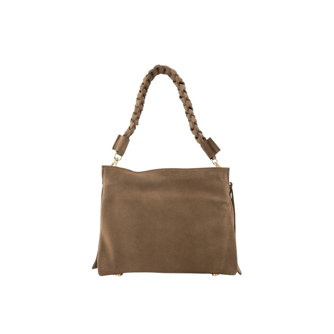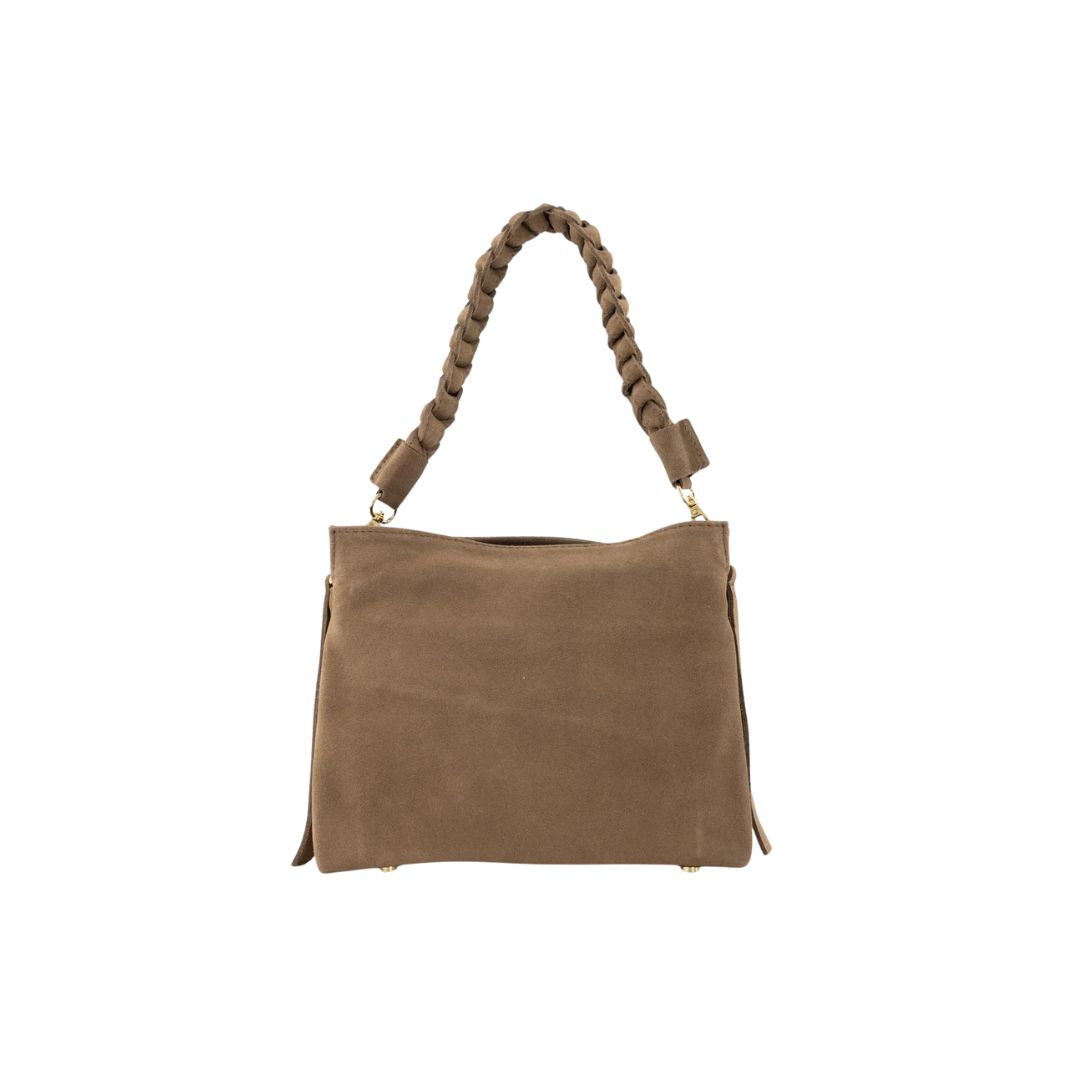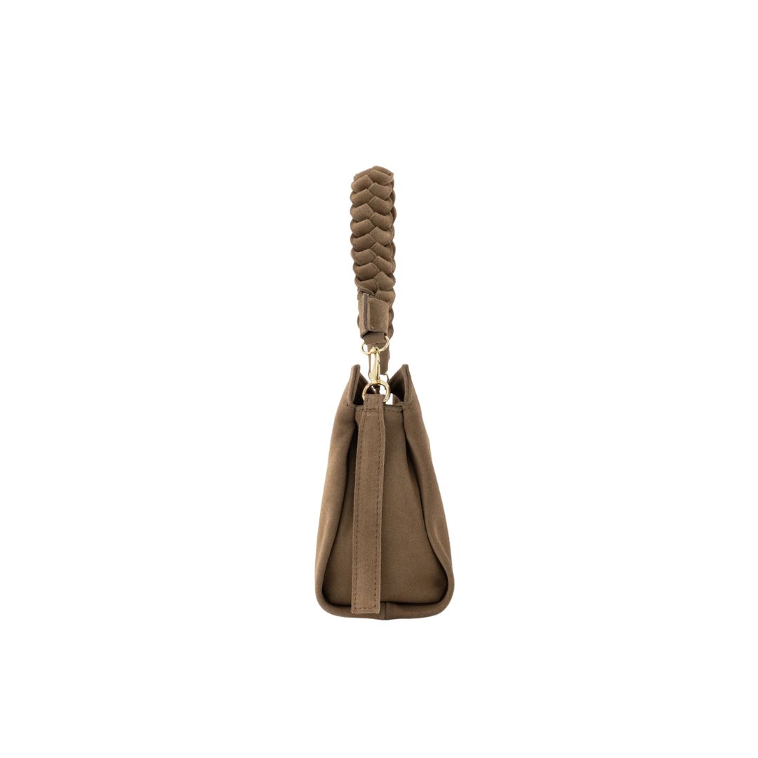 Sarah is een suede leren handtas die ook gedragen kan worden als crossbody tas. Bij de tas zit een afneembaar en verstelbaar hengsel. De tas heeft een binnenvak met aan de binnenzijde een steekvak. Dit product heeft de volgende afmetingen (cm): breed 23.5, hoog 14, diep 9.