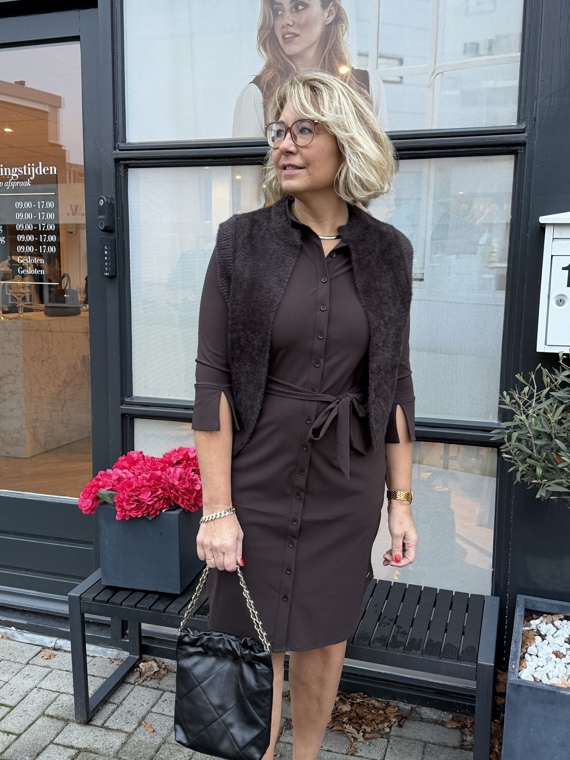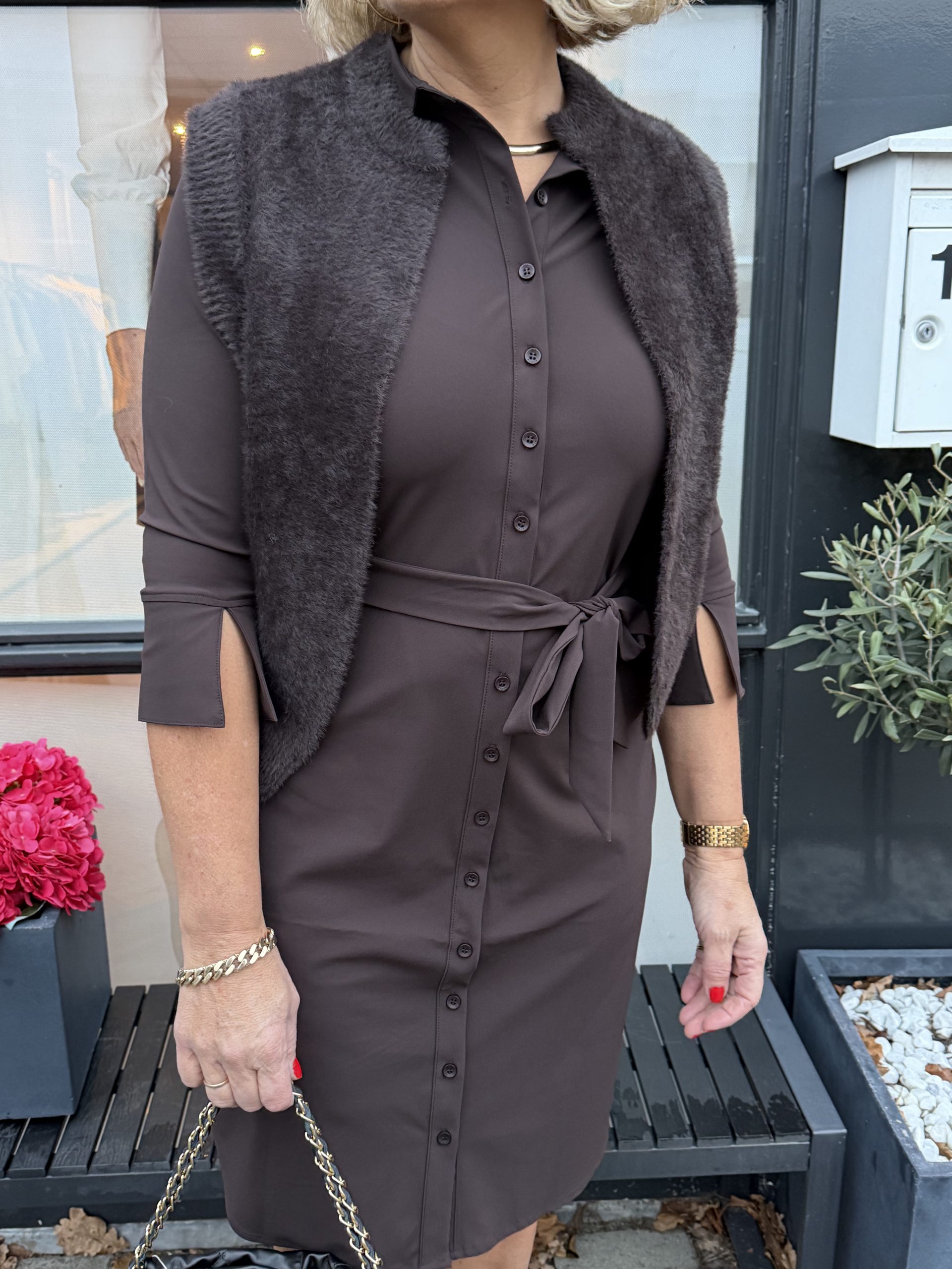 Mi Piace – Jurk 3/4 Mouw – Espresso
