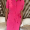 Mi Piace – Jurk Korte Mouw Knoopjes – Fuchsia
