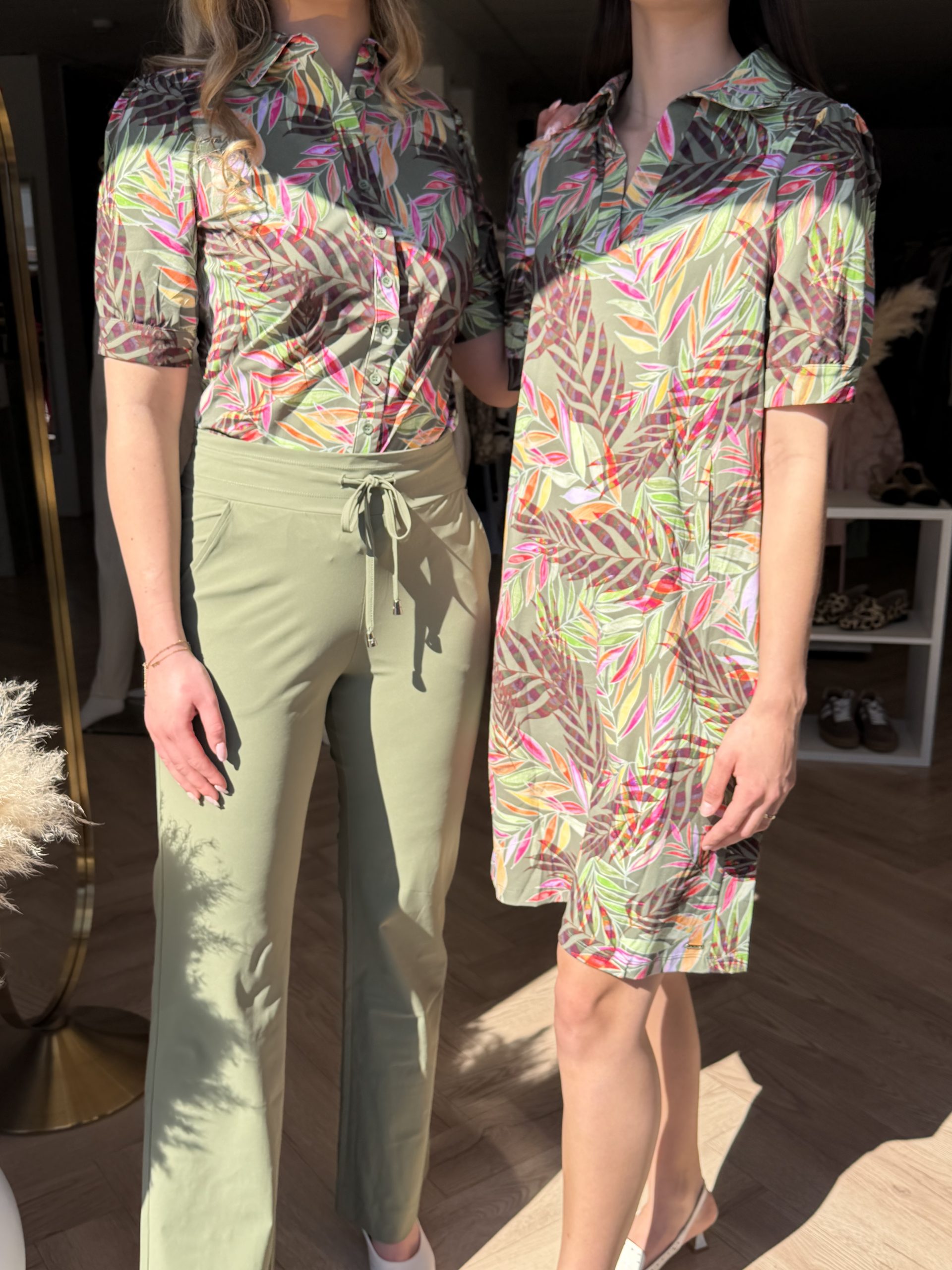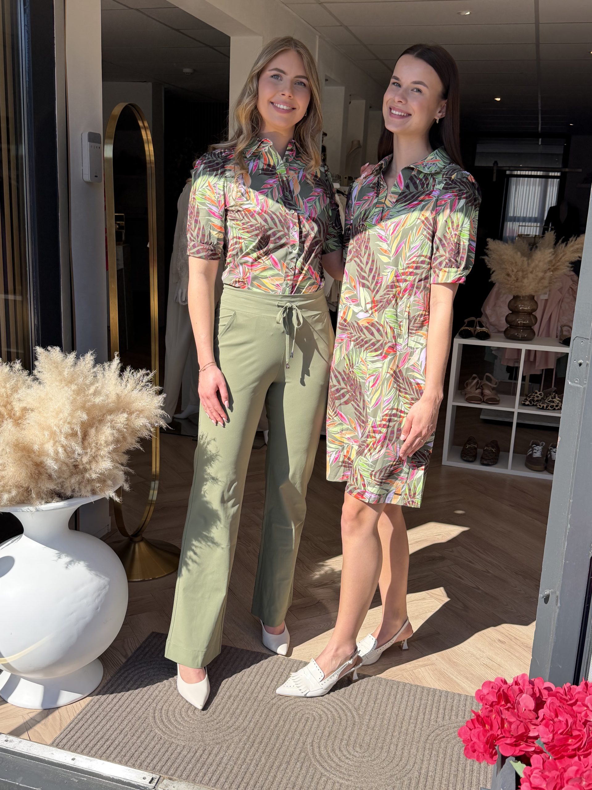 Mi Piace – Polo Dress Pencil Branches Print – Olive