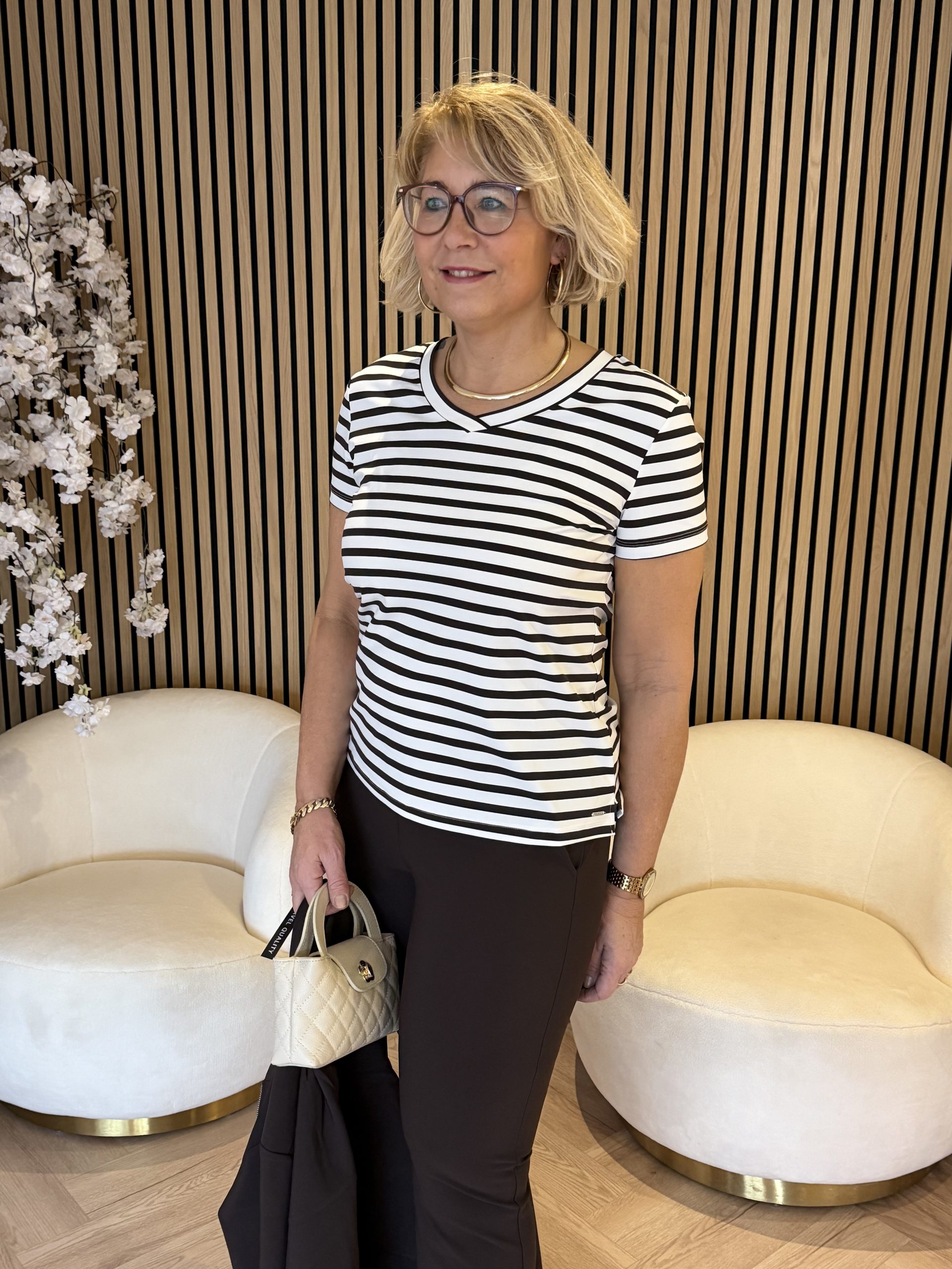 Mi Piace – T-shirt V Hals Stripe – Espresso | Off W.