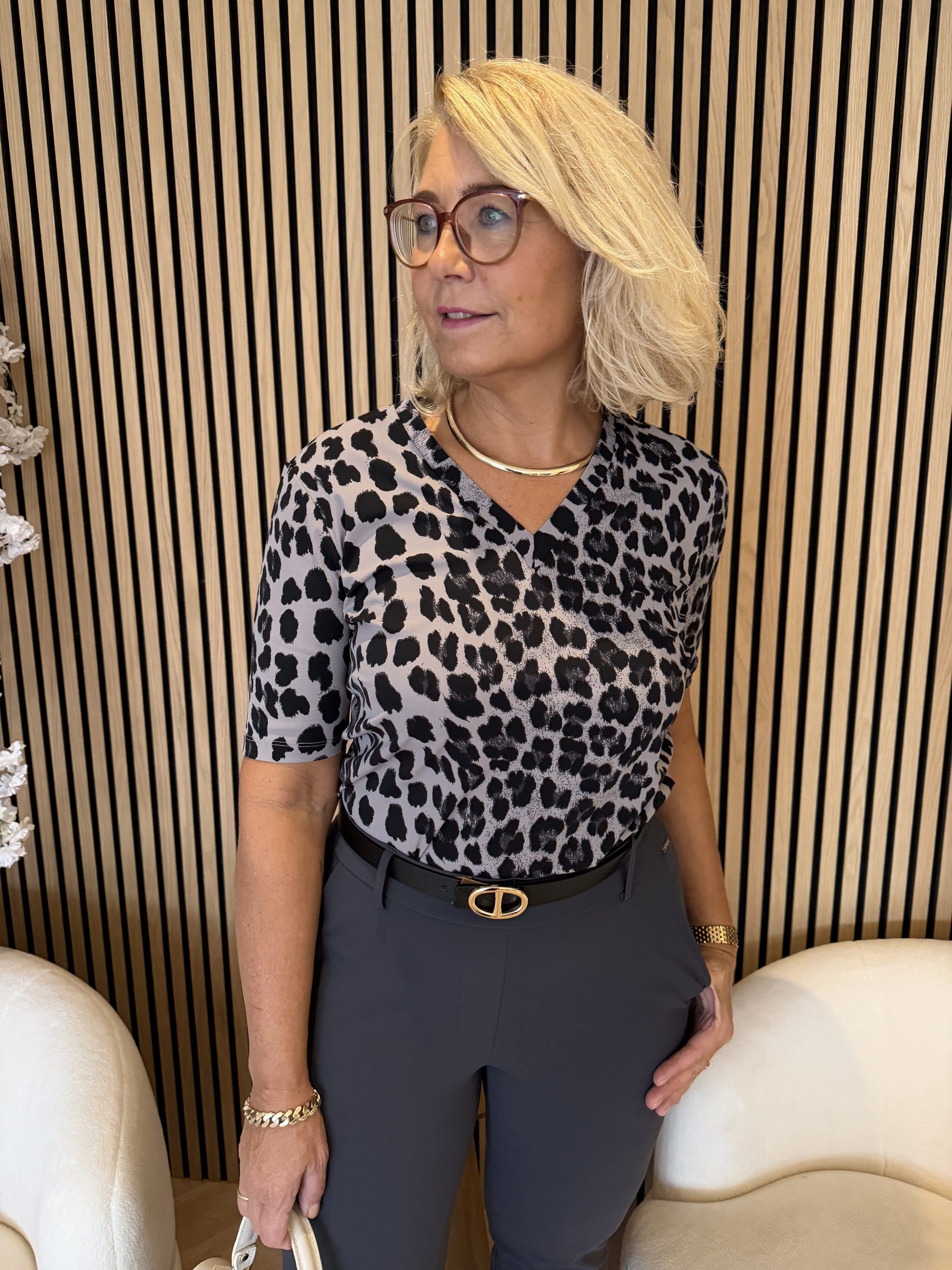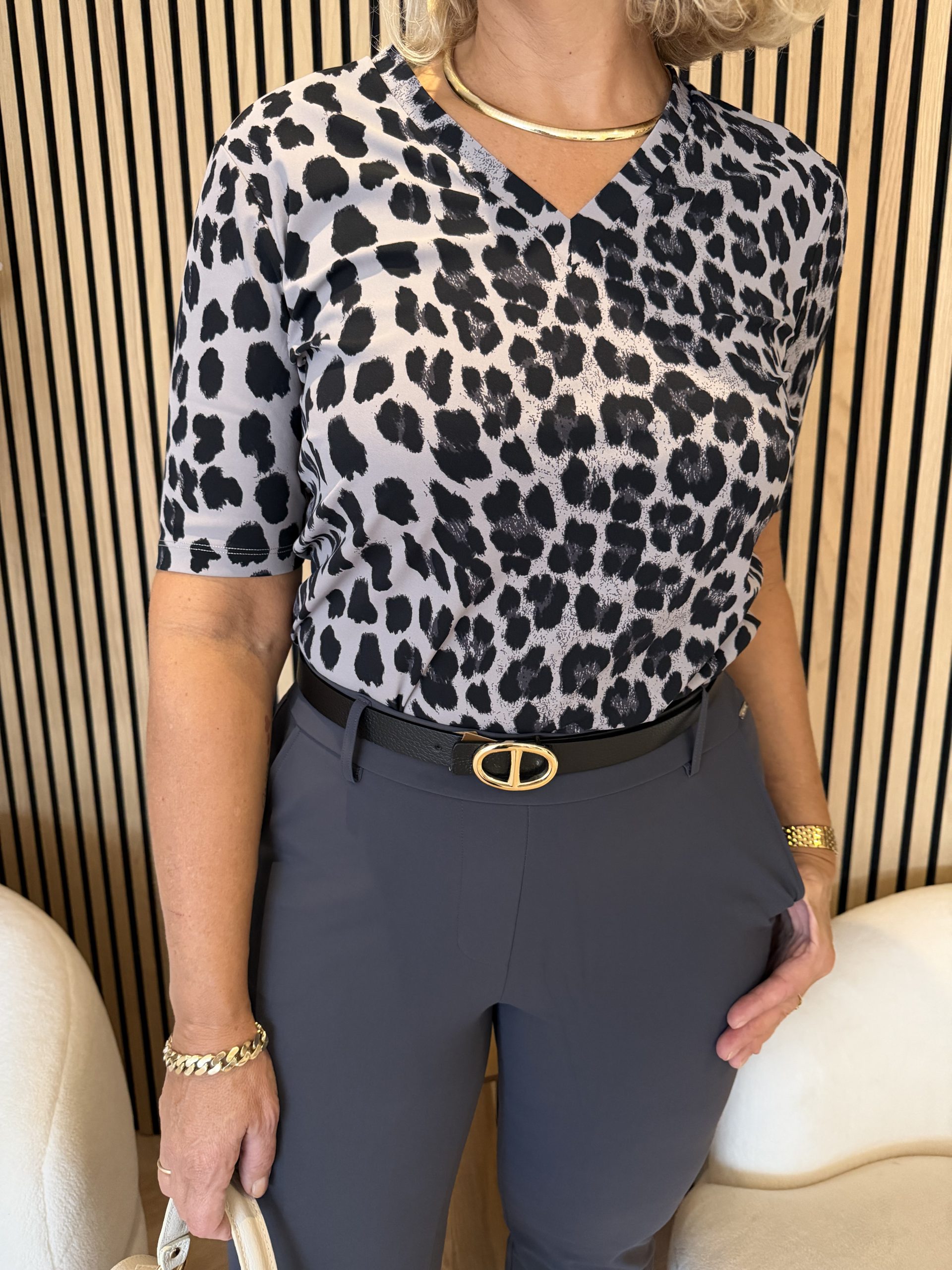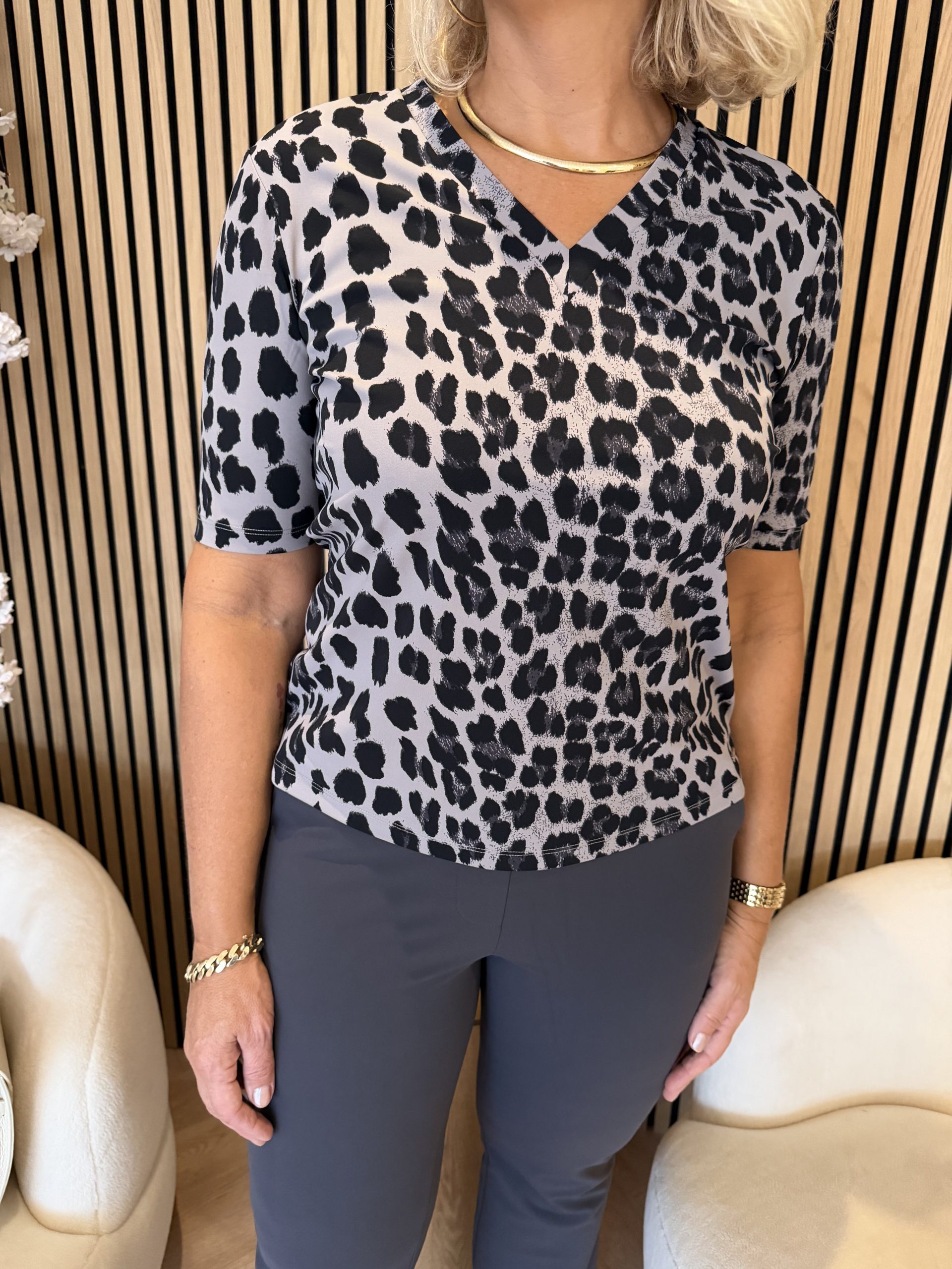 Mi Piace – T Shirt V Neck Leopard Print – Grey