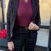 Mi Piace – Travelstof Blazer Check Herringbone Print – Black | Burgundy