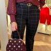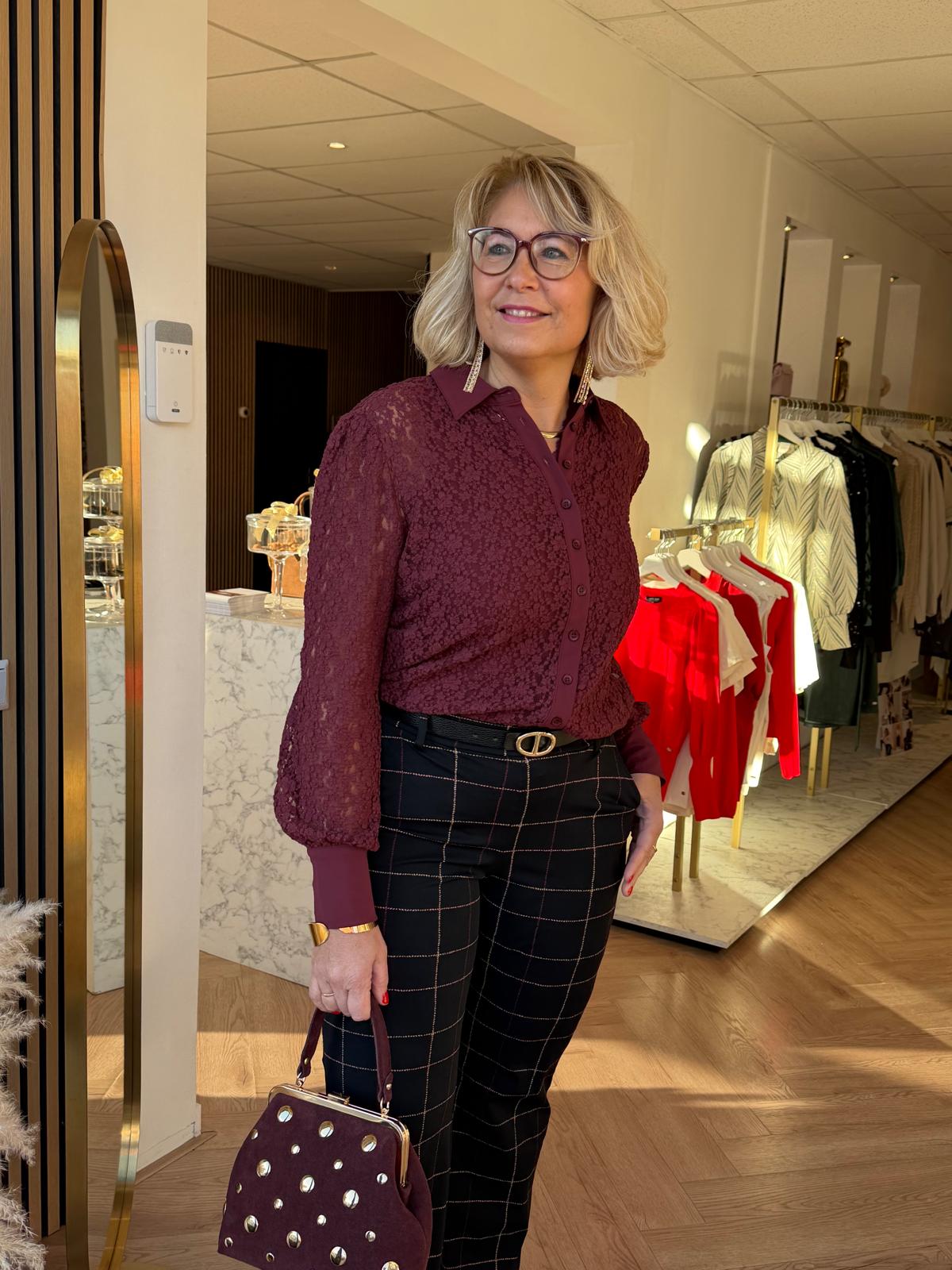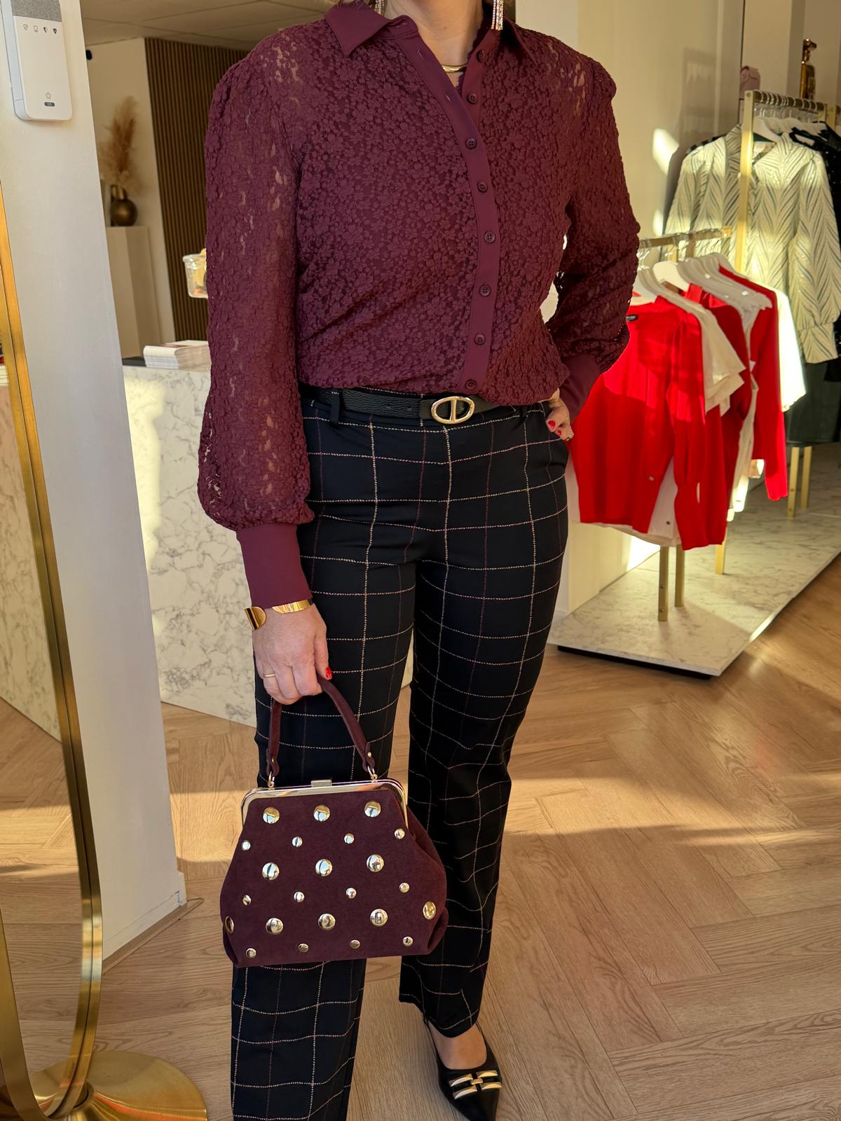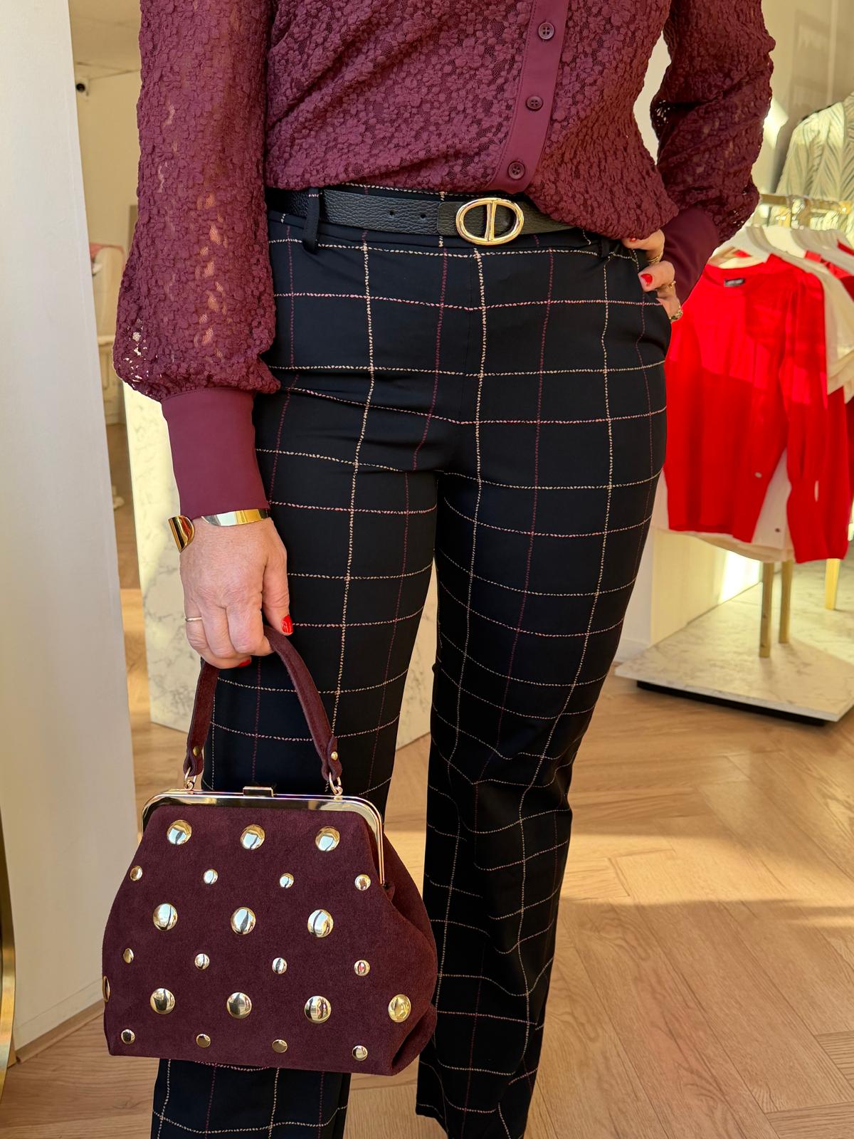 Mi Piace – Trousers Check Herringbone – Black | Burgundy