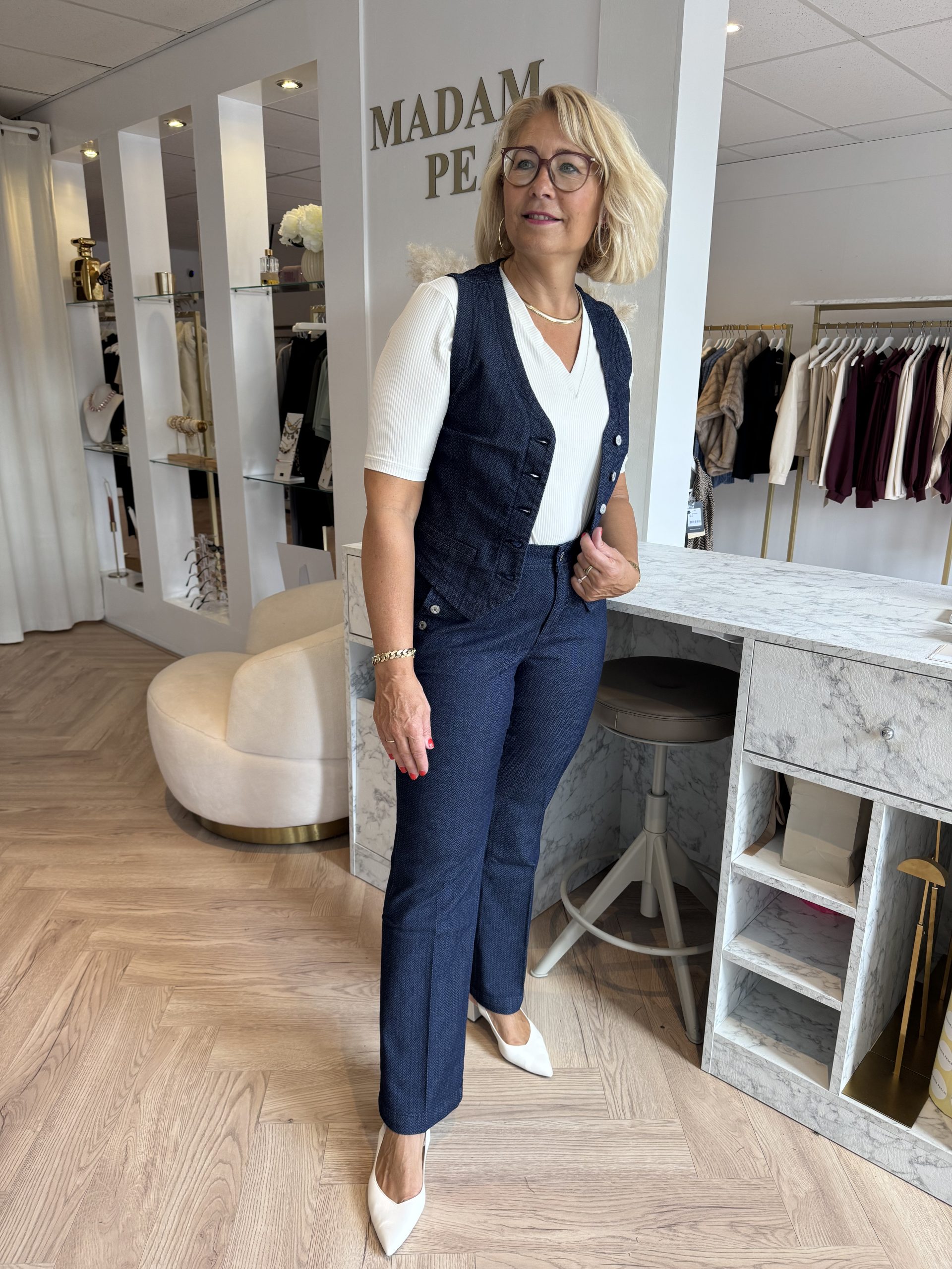 Red Button – Waistcoat Denim Herringbone – Dark Blue