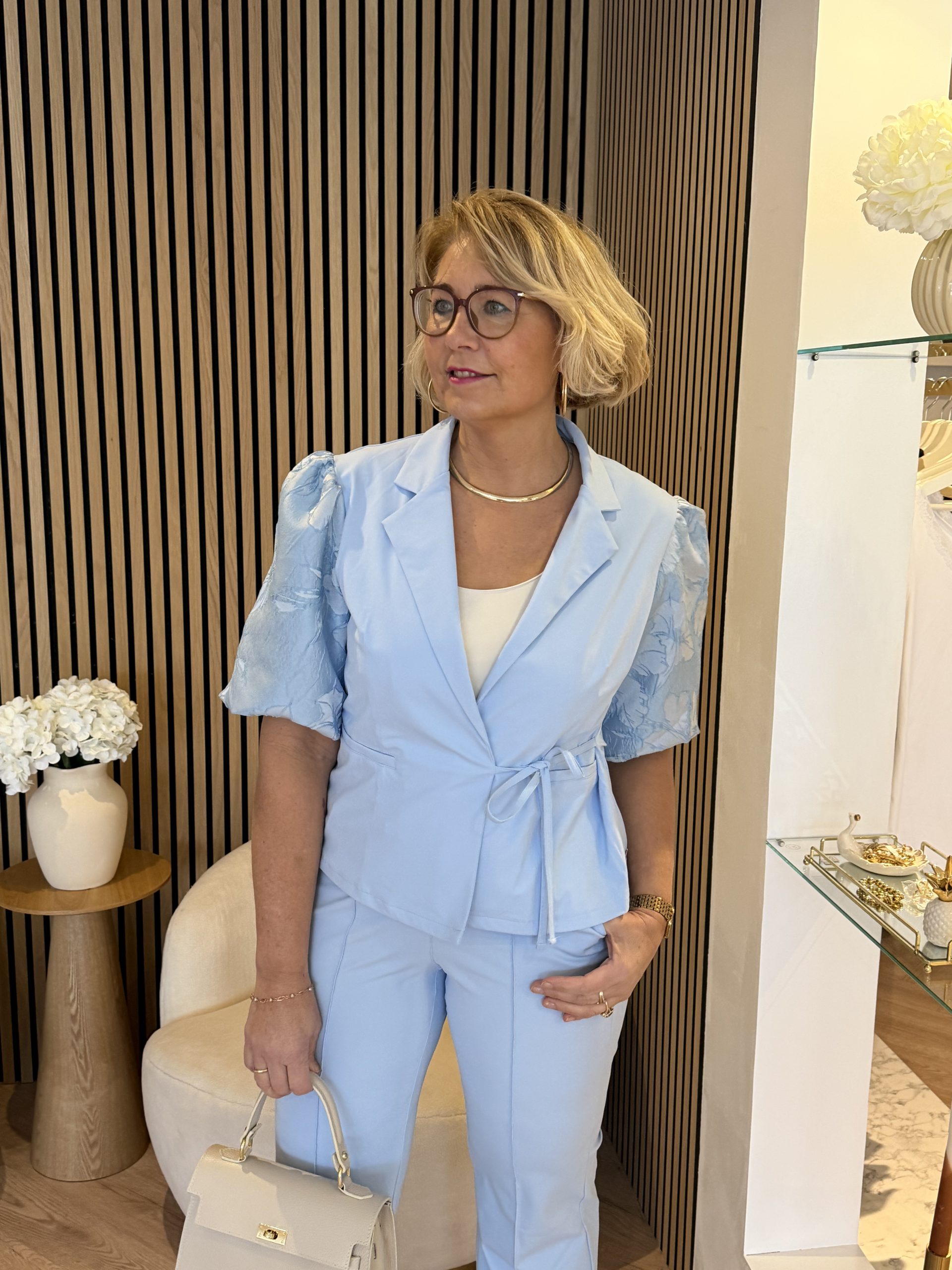 Triple Nine – Blazer short sleeves cross body with satin fabric – L.Blue