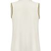De mouwloze afwerking geeft de blouse een luchtige en eigentijdse uitstraling, terwijl de subtiele gouden bies zorgt voor een luxe en verfijnd detail. De neutrale kit kleur maakt deze blouse tijdloos en eenvoudig te combineren met verschillende outfits.