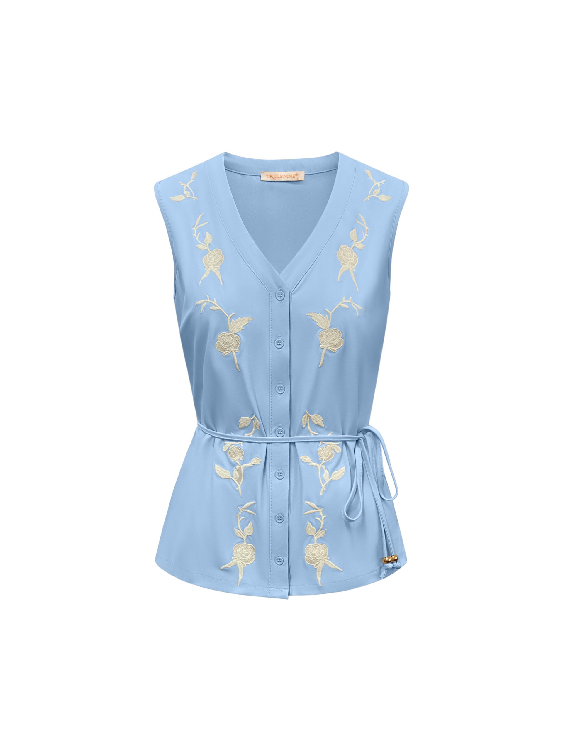 Triple Nine – Blouse cut sleeves with embroidery and cord – L.Blue