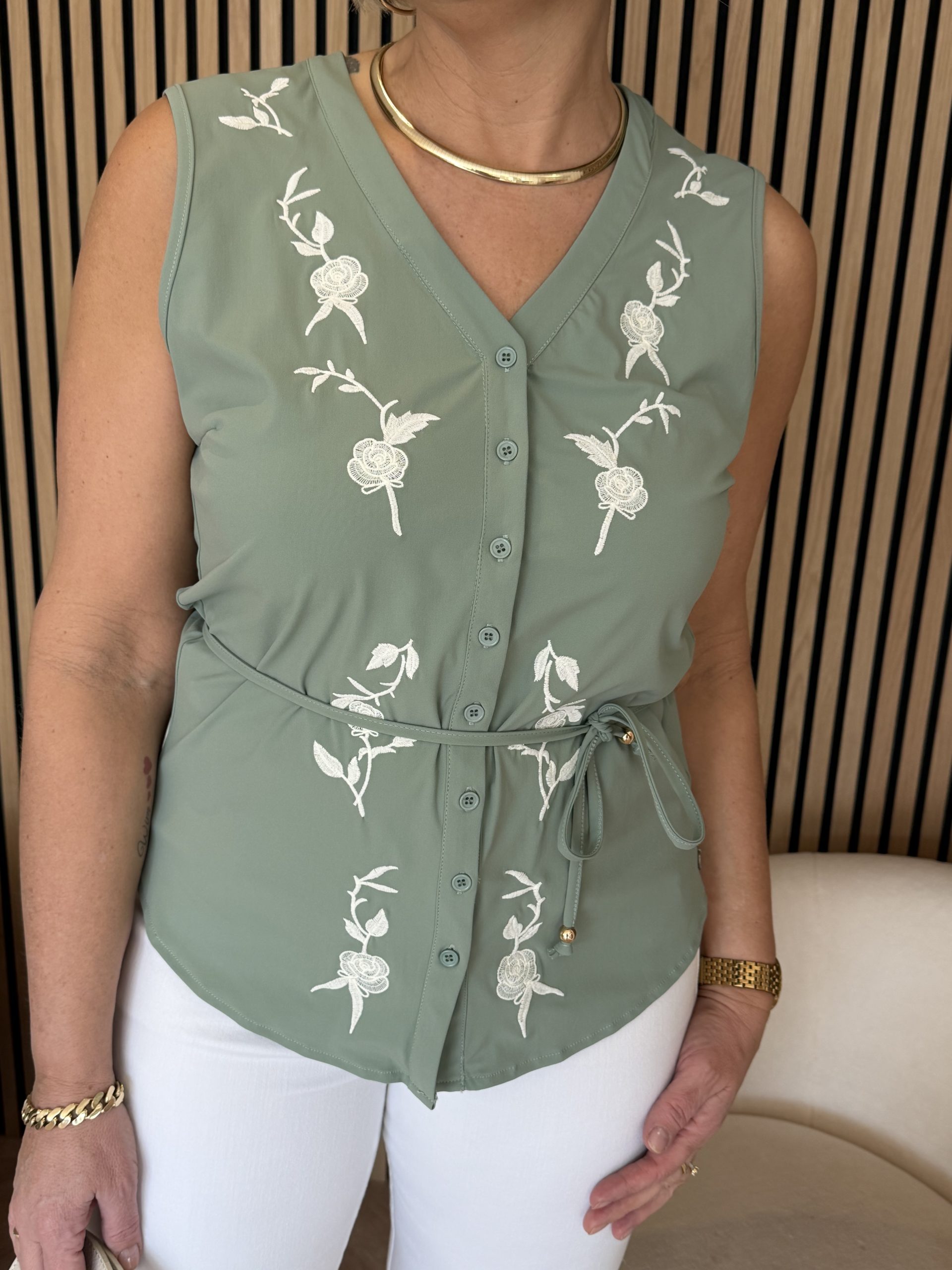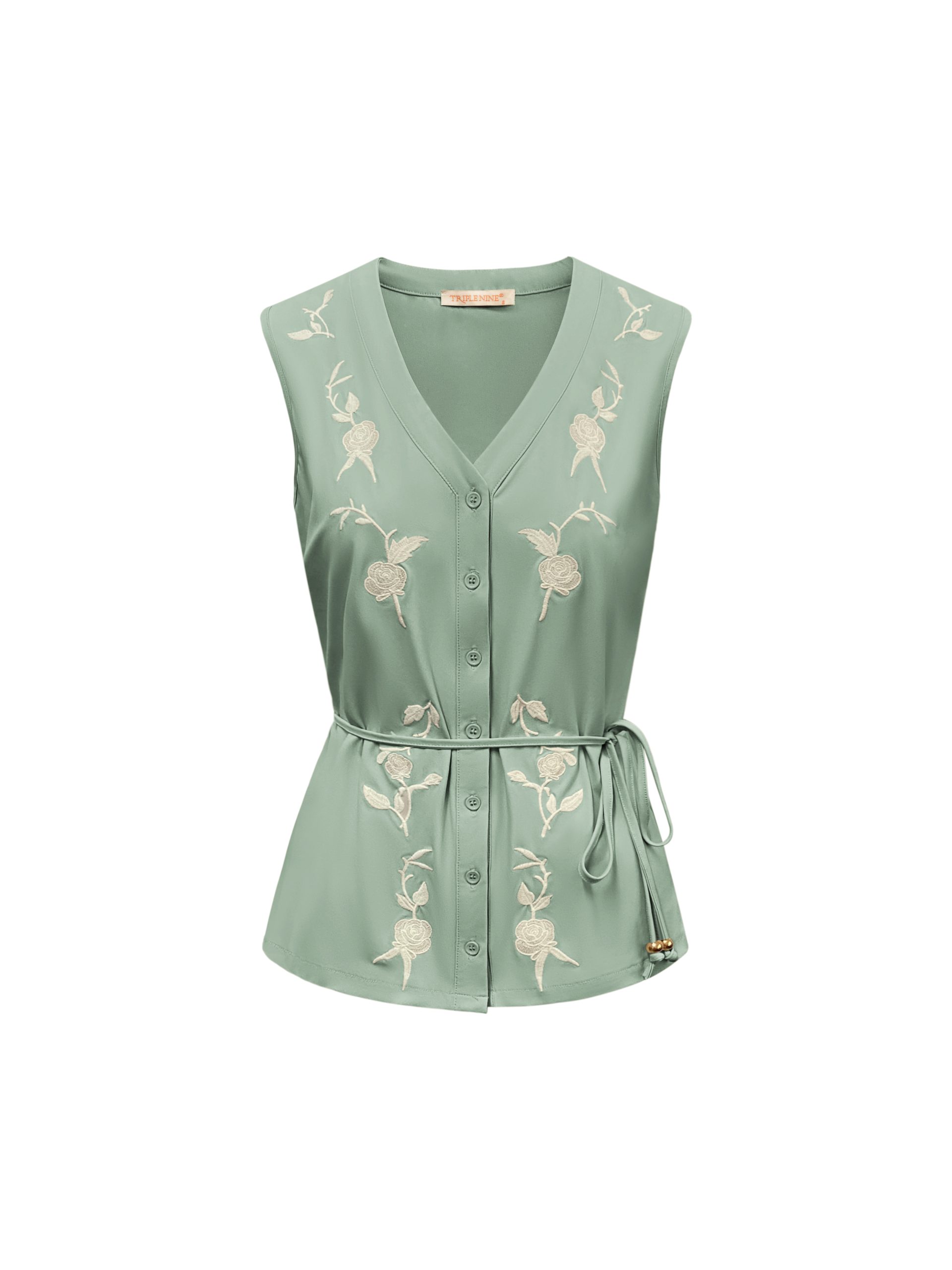 Triple Nine – Blouse cut sleeves with embroidery and cord – Sage green