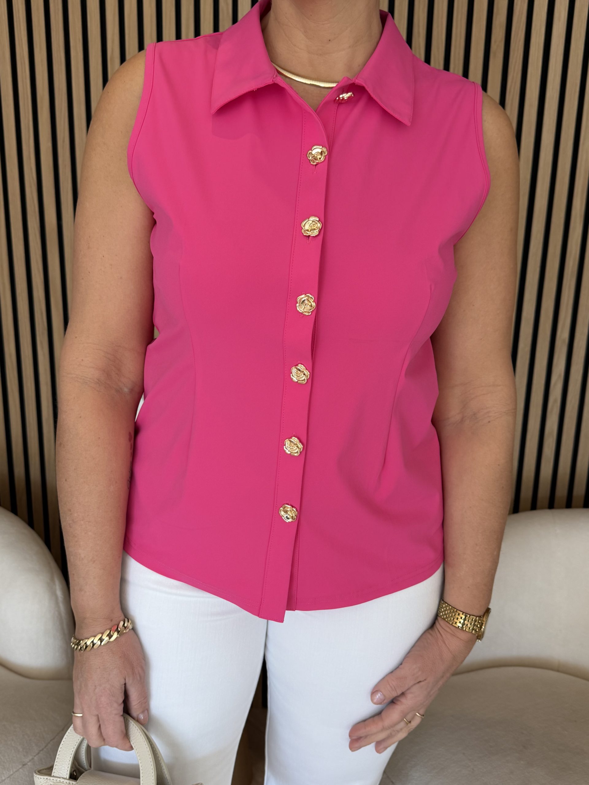 Triple Nine – Blouse cut sleeves with gold buttons – Fuchsia