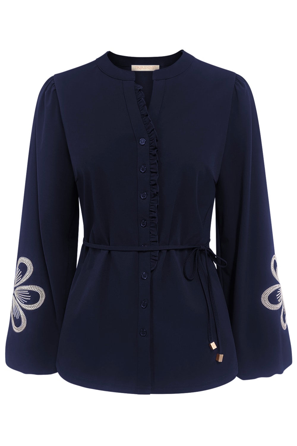 Triple Nine – Blouse flower embroidery with cord – Navy