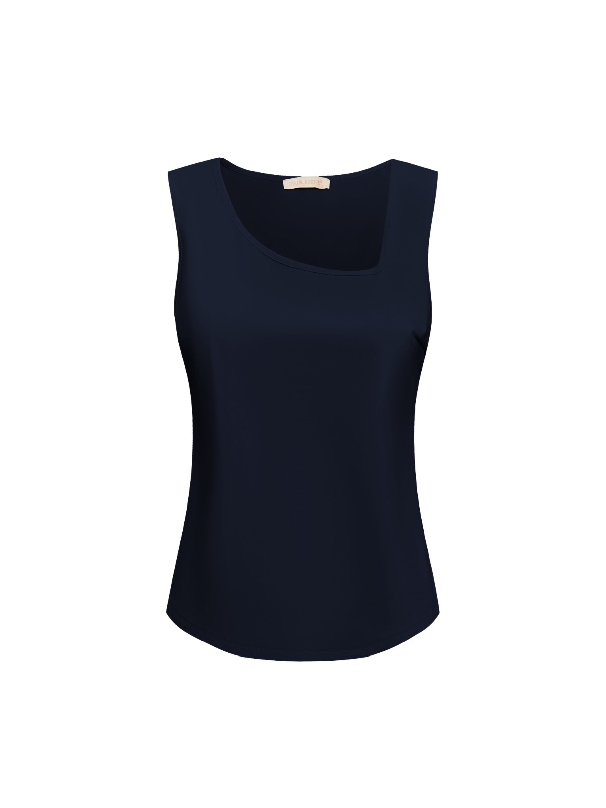 Stijlvolle top met moderne square neck in diep navy gemaakt van comfortabele travelstof en valt perfect op maat.